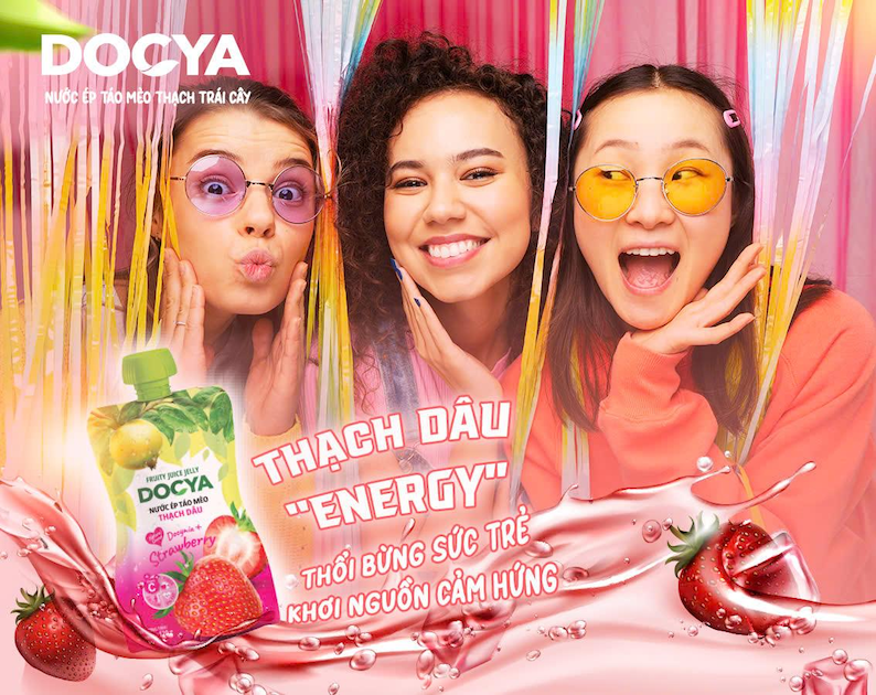 Thạch dâu là sự đồng hành hoàn hảo cho những ngày dài bận rộn, những chuyến dã ngoại hay các hoạt động đòi hỏi sự nhiệt huyết. Đây là lựa chọn lý tưởng để lan tỏa tinh thần sống tích cực của giới trẻ. DOCYA thạch dâu như một liều vitamin hạnh phúc, lan tỏa niềm vui và giúp các bạn trẻ dễ dàng kết nối với mọi người xung quanh.